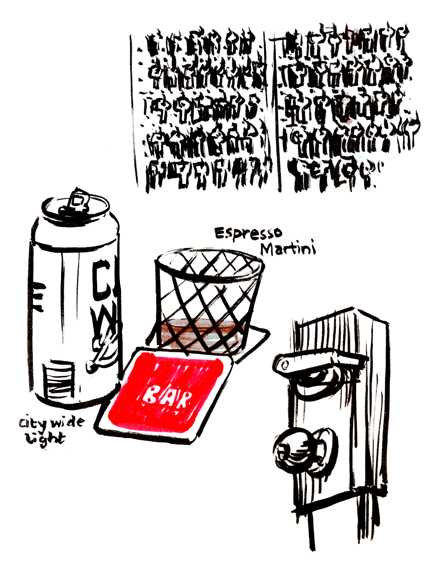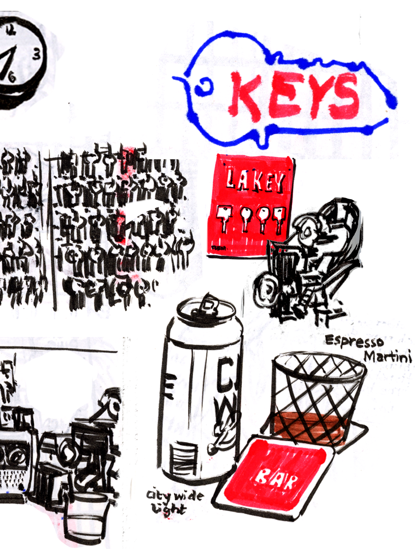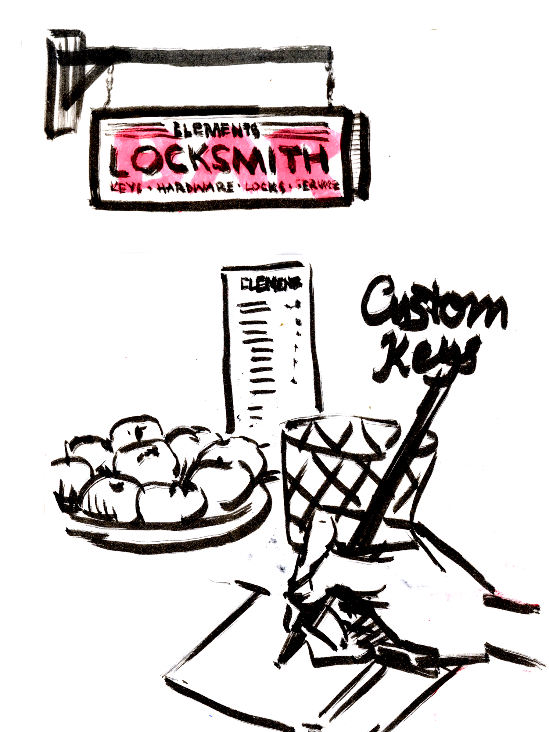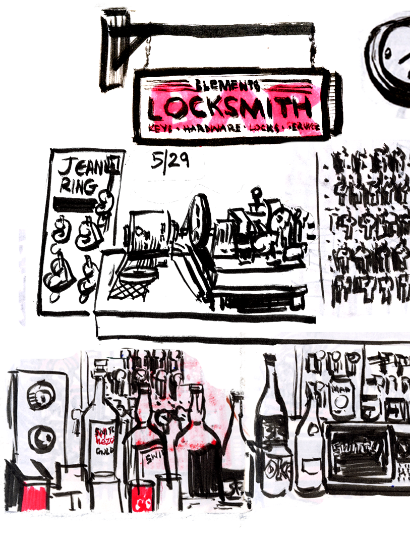 Location drawing from a lock and security shop turned bar on Cherokee Street, St. Louis, MO.