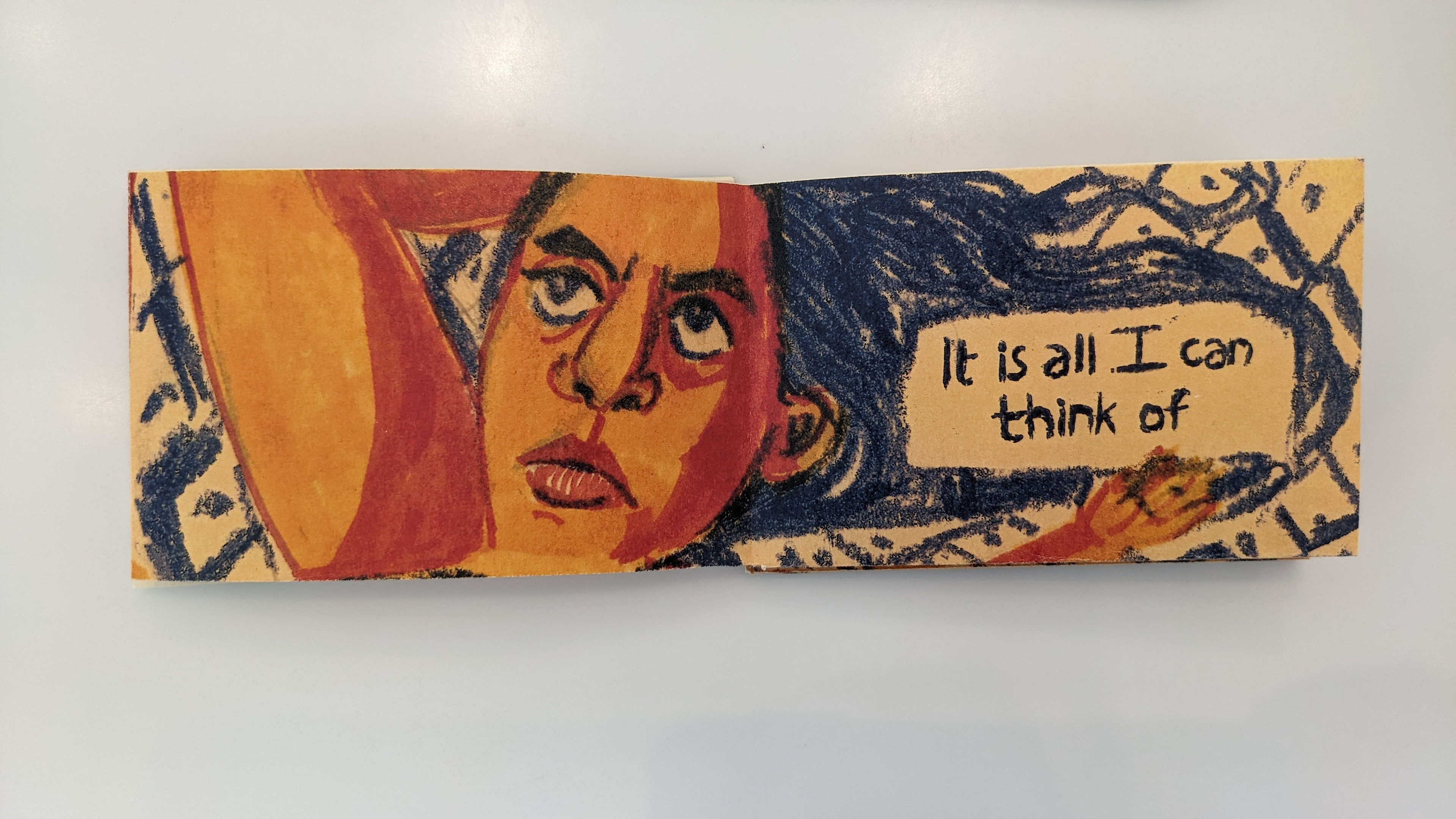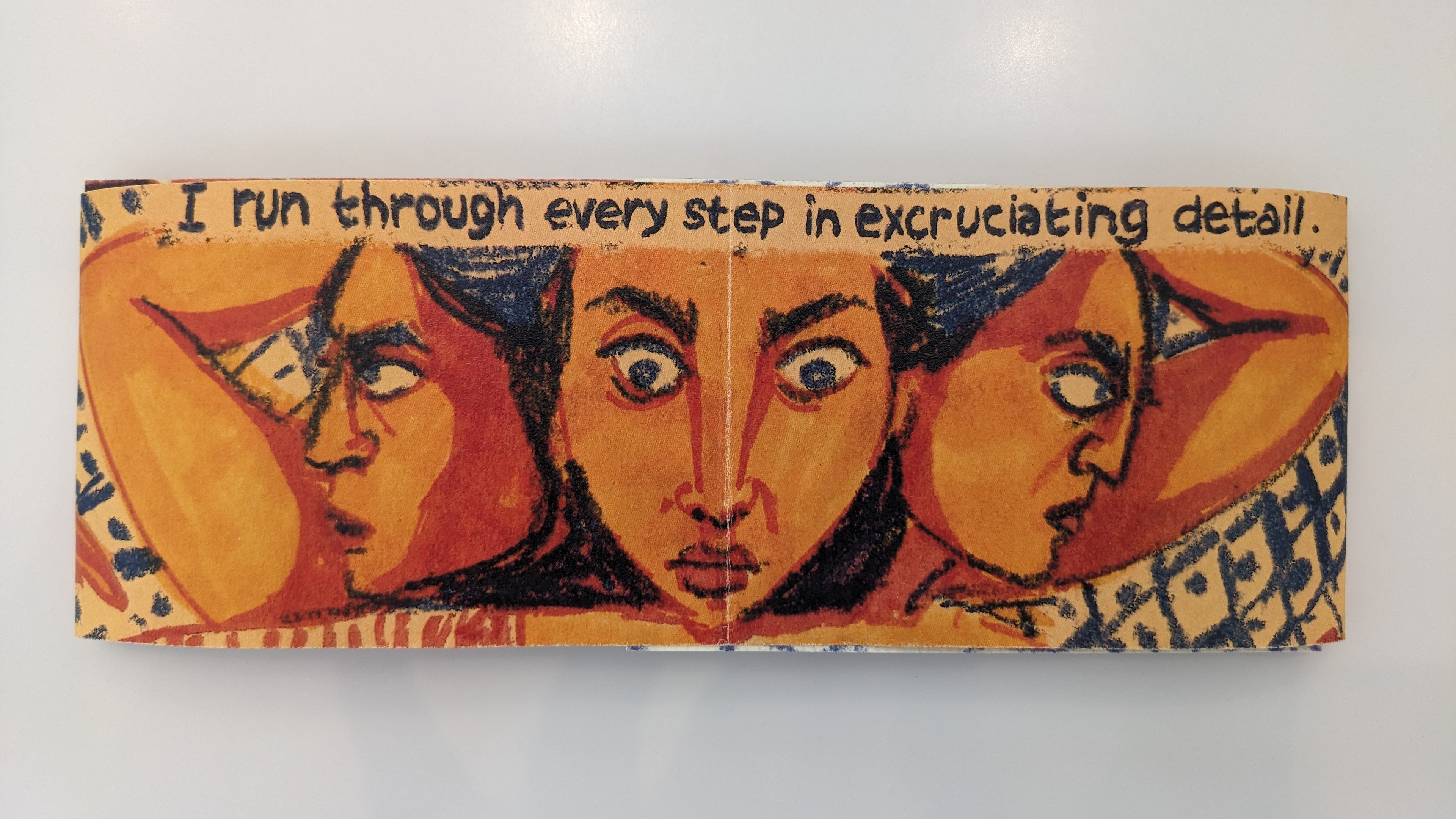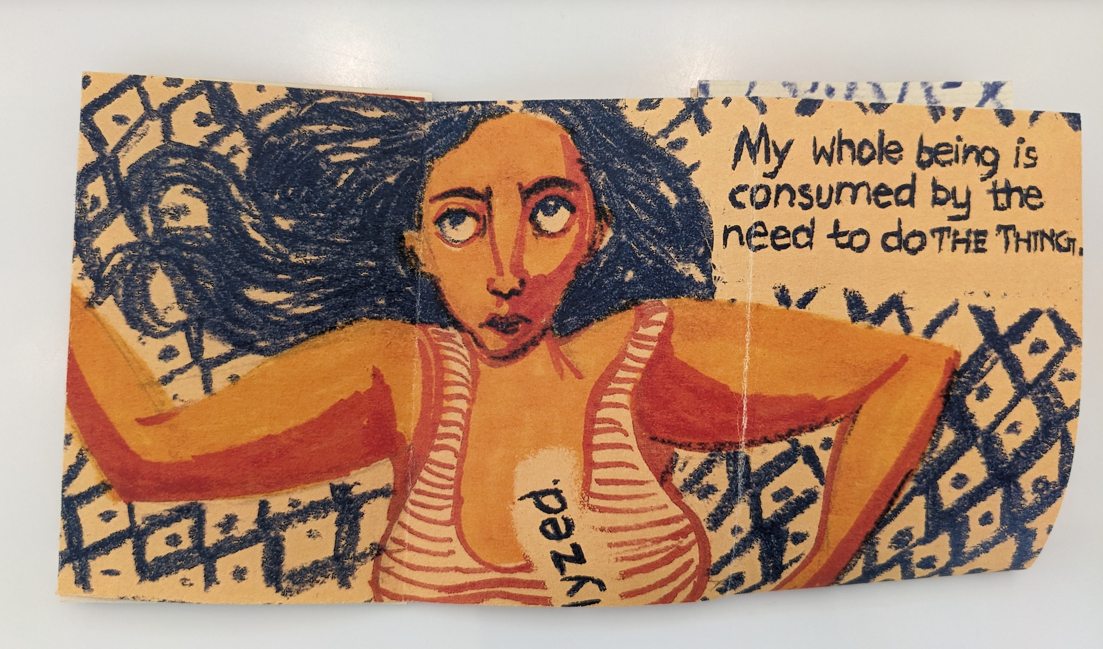 Meandering zine, 11X17 inches, pastel and markers.
