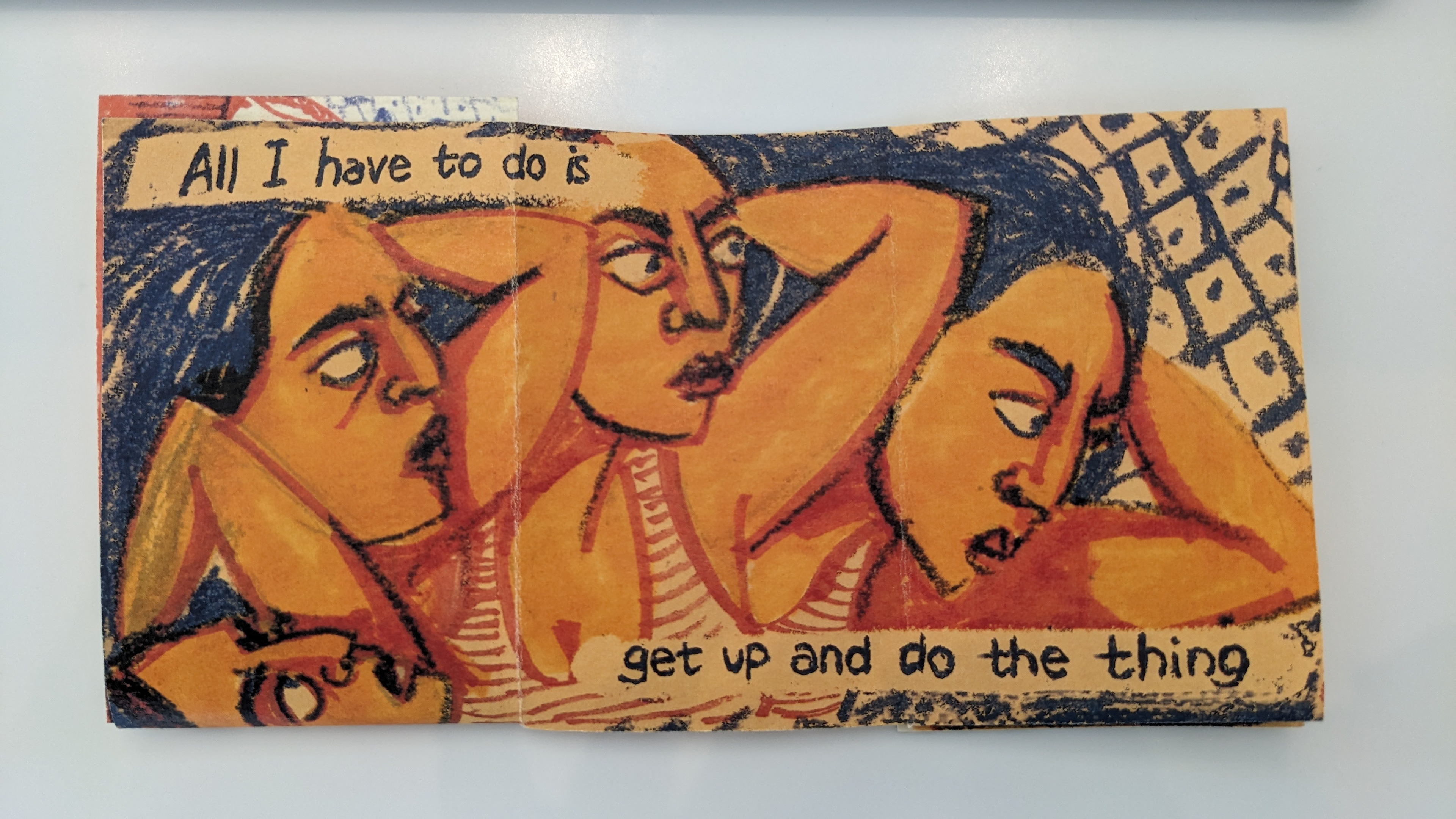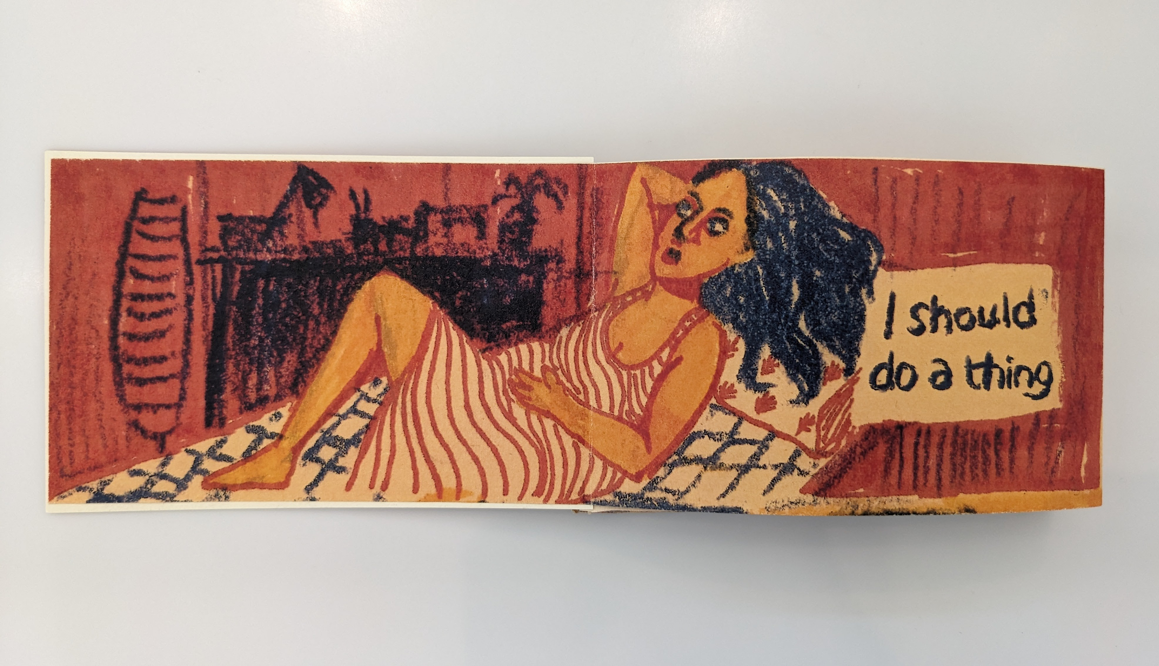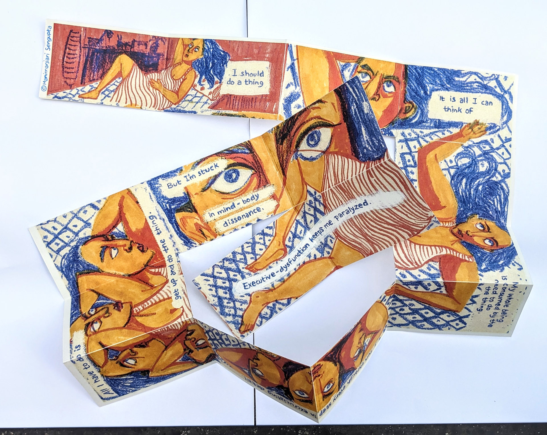Meandering zine, 11X17 inches, pastel and markers.